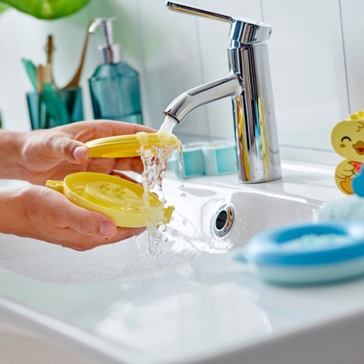 - Rozwojowa zabawa — maluchy mogą zbudować zwierzątka z dwóch klocków i umieścić je w pływających pierścieniach. Dzieci mogą połączyć i rozłączyć pierścienie, które robią bąbelki, gdy przesuwa się je po wodzie