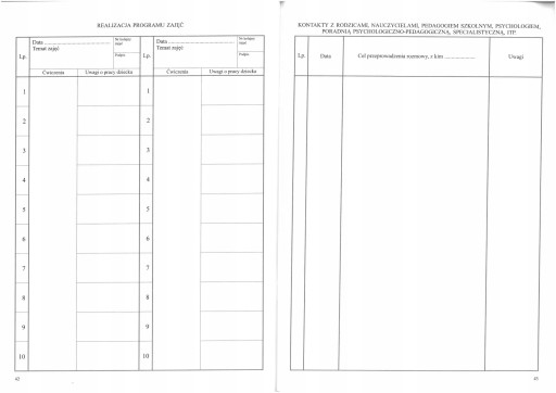 Dziennik zajęć specjalistycznych (logopedycznych, korekcyjno-kompensacyjnych ...) - A4 (48 str.) miękka oprawa kartonowa.