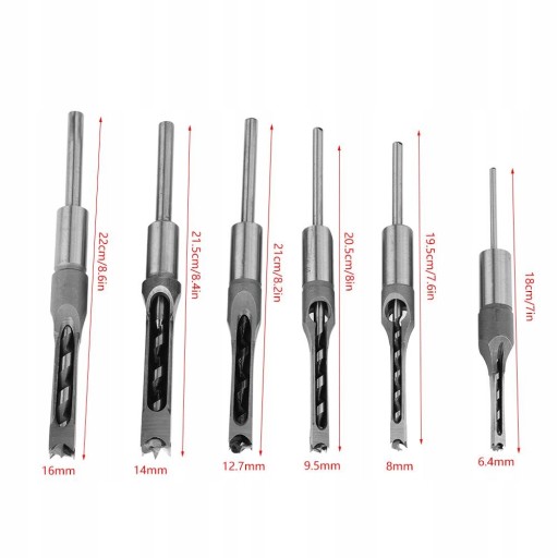 - Zestaw zawiera 6 sztuk wierteł o różnej średnic: 6, 8, 10, 12, 14, 16 mm