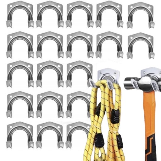 W zestawie jest aż 20 sztuk haczyków, takie haczyki nadadzą się do przechowywania i uporządkowania narzędzi ogrodowych jak i warsztatowych.