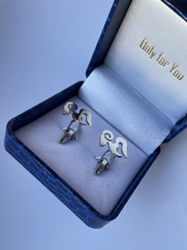Poznańskie Koziołki Spinki do Mankietów EXC srebrne w etui na prezent
