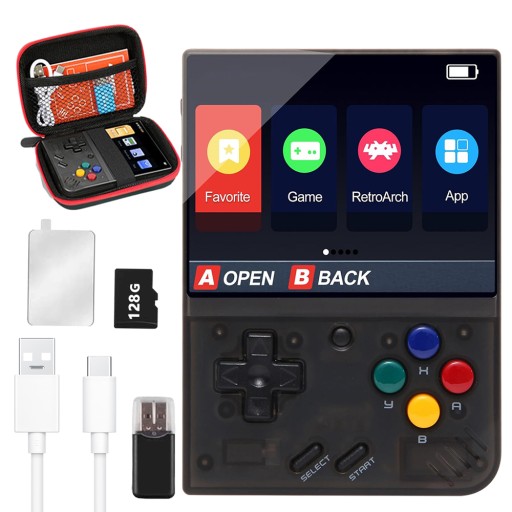 PRZENOŚNA KONSOLA RETRO DO GIER MIYOO MINI PLUS NA 15000 GIER z KARTĄ 128G
