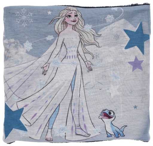 Zewnętrzną tkaninę pokrywa trwały sitodruk przedstawiający królewnę Elsę na tle płatków śniegu.