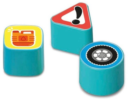Zabawka jest wyposażona również w elementy stymulujące sprawność manualną i wyobraźnię, takie jak klakson, otwierana maska z kołami zębatymi oraz otwory do wkładania kształtów, które można znaleźć w otwieranym bagażniku.