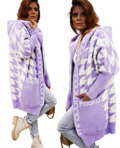 KARDIGAN Z ALPAKI z ciepłym, głębokim kapturem;