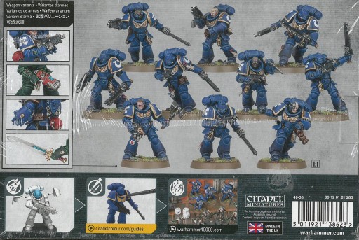 Zestaw figurkowy do złożenia, sklejenia i pomalowania. Skala: 28 mm. Model przedstawia oddział piechoty zakonu Kosmicznych Marines.