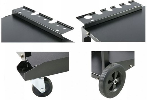 - Solidny wykonany wózek znacznie poprawiający komfort pracy wyposażony w cztery koła w tym dwa przednie skrętne