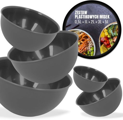 ➡️ZESTAW MISEK KUCHENNYCH PLASTIKOWE MISKI 5szt MISECZKA OKRĄGŁA➡️