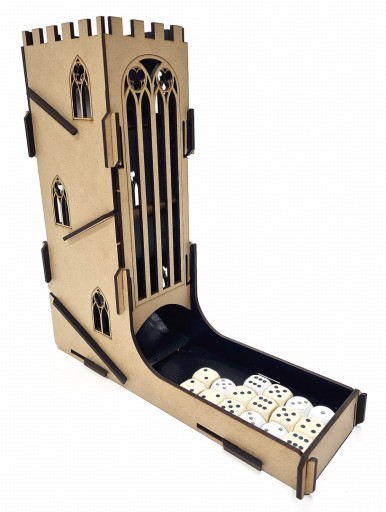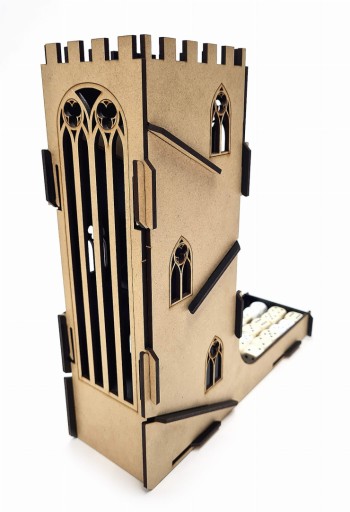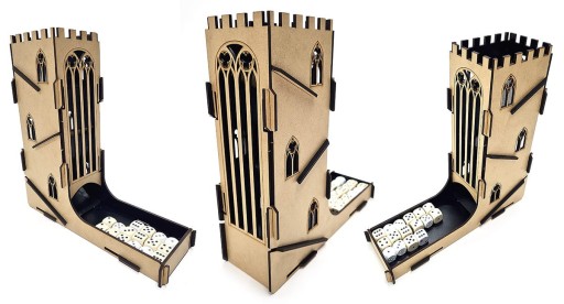Ta wieża do kości pasuje do gier planszowych osadzonych w średniowiecznym / fantastycznym świecie. Dość duży rozmiar i wyjątkowa ozdoba sprawia, że wyglądają jak prawdziwa wieża zamkowa, która jest idealnym wystrojem mrocznych planszy.