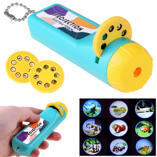 Projektor dla dzieci z kolorowymi obrazkami do wyświetlania w ciemności. Dzięki niewielkiemu rozmiarowi, jest on poręczny i zawsze można go zabrać ze sobą w każde miejsce. Zawsze można go mieć przy sobie np.: w pokoju podczas nocnego zasypiania, pod namiotem na wakacjach, u babci i dziadka podczas spędzania weekendu. Ręczny projektor znajdzie zastosowanie podczas wieczornych zabaw, opowiadań, tworzenia własnych historii. 3 tarcze ze slajdami sprawią, że gadżet szybko się nie znudzi. Każda tarcza zawiera 8 obrazków o innej tematyce. Na pierwszej znajdują się różne dinozaury, na drugiej owady, a na trzeciej owoce. Bez zakładania slajdów może posłużyć jako latarka by wieczorami oświetlać ciemne zakamarki pokoju.