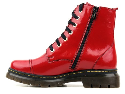 Trapery damskie cenionej polskiej marki Helios Komfort zostały wykonane z wysokiej jakości skóry naturalnej w żywej czerwieni. Wnętrze jest ocieplone polarem obuwniczym. Suwak pozwala na szybkie i wygodne zakładanie obuwia, a dzięki regulacji sznurowadeł, model można dobrze dopasować do stopy. Gruba, traperowa podeszwa z termokauczuku dobrze izoluje od podłoża i ma właściwości antypoślizgowe.