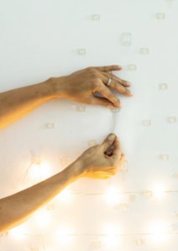 3. Usuń taśmę Scotch Blue™ ze ściany i umieść lampki choinkowe na przymocowanych haczykach.