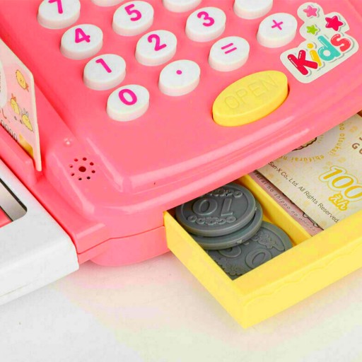 Prezentowana kasa fiskalna dziecięca gwarantuje realistyczną zabawę. Dziecko będzie zachwycone, ponieważ w zestawie znajdzie pieniądze banknoty oraz bilon. Kasa posiada kalkulator z miękkimi przyciskami, które naciskane wydają dźwięki. Kasa faktycznie dodaje, odejmuje, mnoży i dzieli, co pomoże dziecku w nauce liczenia, a cyferki wyświetlają się na ekranie LCD.