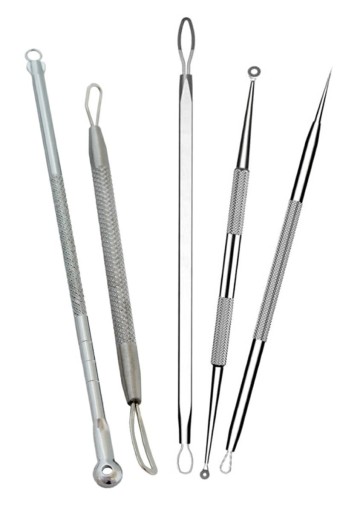 Zestaw 5 łyżeczek do bezpiecznego usuwania zaskórników, wągrów i pryszczy! Profesjonalne, pętelkowe łyżeczki przeznaczone są do pracy przy zaskórnikach i innych zanieczyszczeniach twarzy. Znakomicie sprawdzą się do usuwania pryszczy z trudno dostępnych miejsc!