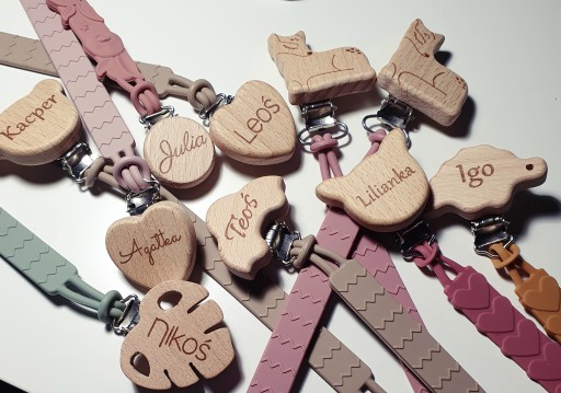 Są one podpisane i bezpieczne. Nie grozi im rozerwanie (bez koralików malowanych farbami) ubrudzenie, przesiąknięcie (ślina, ulewanie, picie) czy rozplątanie. Zdjemujesz z klipsa- myjesz, wycierasz. Bez czekania aż wyschnie, bez niszczenia przez wodę drewnianych koralików.