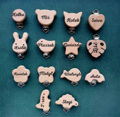 Klips wykonany jest z metalu i drzewa bukowego szlifowanego (drzewo ma właściwości antybakteryjne). Mocno trzyma się ubranka nie niszcząc go.