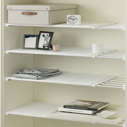 Teleskopowa półka do przechowywania jest bardzo wygodna w codziennym życiu, rozciągają się w zakresie 38-55 cm. Taka półka pozwala maksymalnie wykorzystać wolna przestań w Twoim mieszkaniu.