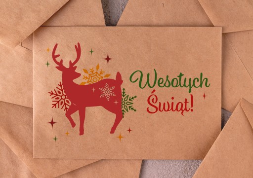 Piękny Kraftowy wygląd koperty urozmaicony o świąteczny nadruk to idealne urozmaicenie świąt zarówno dla dzieci i dorosłych!