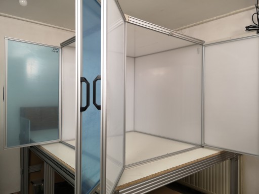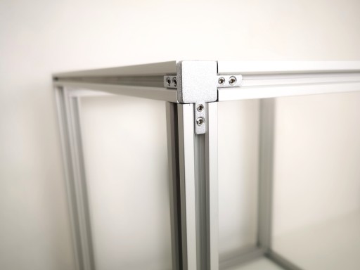 Konstrukcja wykonana z wzmocnionych anodowanych aluminiowych profili konstrukcyjnych 20x20mm.