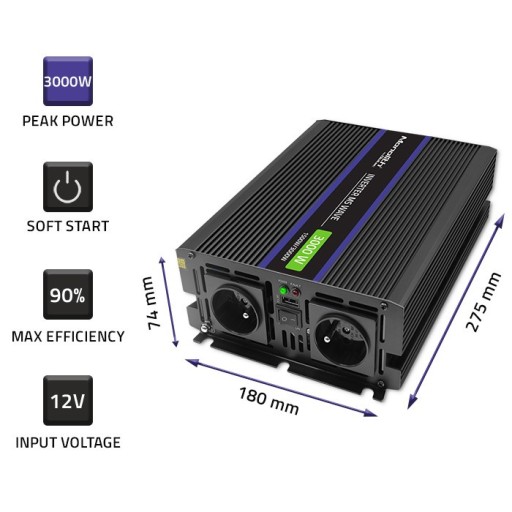 Przetwornica napięcia Monolith 3000 MS Wave | 12V na 230V | 1500/3000W | USB