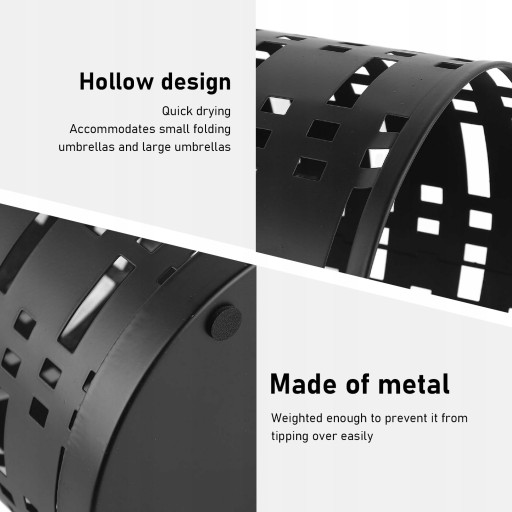 2. PUSTA KONSTRUKCJA: Stylowy stojak na parasole ma pustą konstrukcję, która zapewnia szybkie suszenie i może pomieścić małe składane parasole i duże parasole.