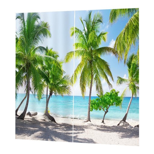 2 Panele Druk Cyfrowy Blackout 3D Zasłony Okno Drzewo Kokosowe