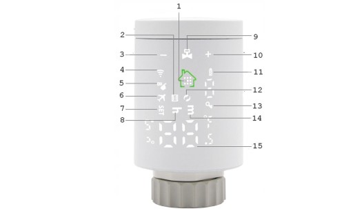 Głowica sterowana jest z harmonogramu, ustawienia ręcznego w aplikacji lub poprzez przyciski na dotykowym panelu głowicy.