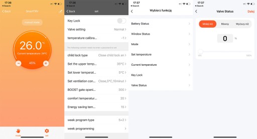 - Sceny (automatyzacje) - sterowanie względem określonych warunków np. włącz piec gdy głowica potrzebuje ogrzewać pomieszczenie.