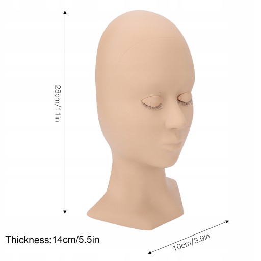 Materiał: silikonowa główka formy, sztuczne rzęsy z włókna chemicznego
