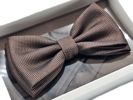 МУЖСКОЙ КОРИЧНЕВЫЙ ГАЛСТУК-БАБОЧКА С УЗОРОМ + КАРМАННАЯ КЛЕТКА