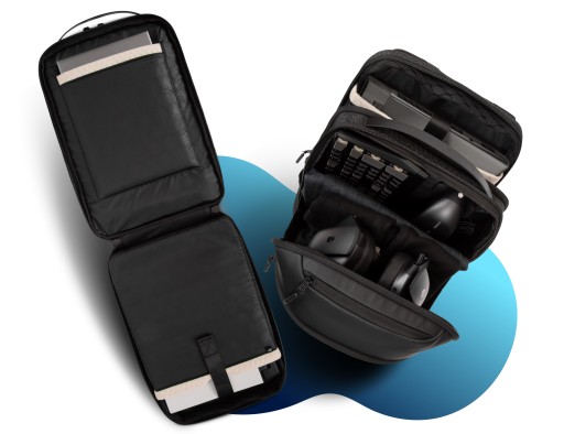 Dwie główne komory pomieszczą wszystkie urządzenia, w tym pełnowymiarową klawiaturę. Wewnętrzne kieszenie ułatwiają uporządkowanie wszystkich urządzeń peryferyjnych lub mniejszych przedmiotów, powerbanków czy zasilaczy.
