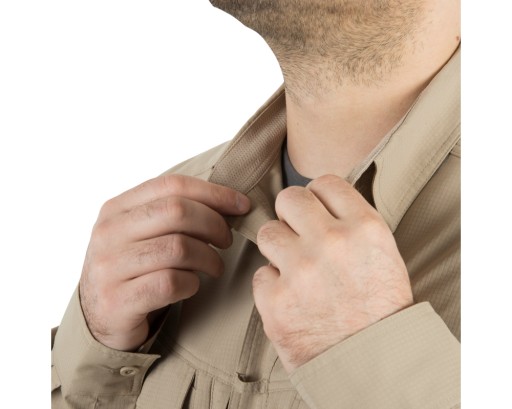 Koszula zaprojektowana z myślą o noszeniu w cieplejszych porach roku lub w rejonach gdzie wysoka temperatura nie jest rzadkim zjawiskiem. Zrobiona z technicznego materiału poliestrowego, w dotyku przypominającego cienką bawełnę. Odprowadza wilgoć z ciała i schnie ekspresowo. Dzięki stonowanej kolorystyce będzie stanowić doskonałe uzupełnienie zarówno outdoorowego jak i miejskiego ubioru. Na listwie guzikowej została wszyta niewielka szlufka, na której można wygodnie zawiesić okulary.