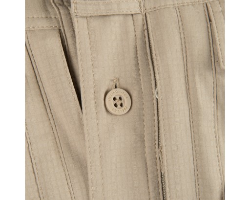 Koszula zaprojektowana z myślą o noszeniu w cieplejszych porach roku lub w rejonach gdzie wysoka temperatura nie jest rzadkim zjawiskiem. Zrobiona z technicznego materiału poliestrowego, w dotyku przypominającego cienką bawełnę. Odprowadza wilgoć z ciała i schnie ekspresowo. Dzięki stonowanej kolorystyce będzie stanowić doskonałe uzupełnienie zarówno outdoorowego jak i miejskiego ubioru. Na listwie guzikowej została wszyta niewielka szlufka, na której można wygodnie zawiesić okulary.