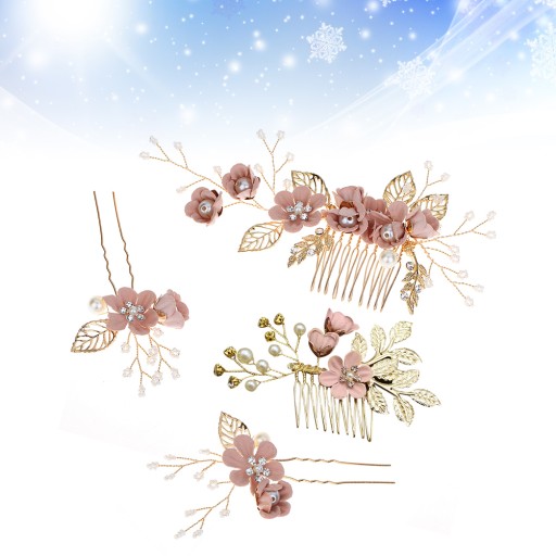 ŚLUBNY RĘCZNIE ROBIONY MODNY GRZEBIEŃ DO WŁOSÓW ZESTAW KWIATOWE ŚLUBNE STROIKI DO WŁOSÓW AKCESORIA DO SUKNI ŚLUBNEJ RHINESTONE 4SZT