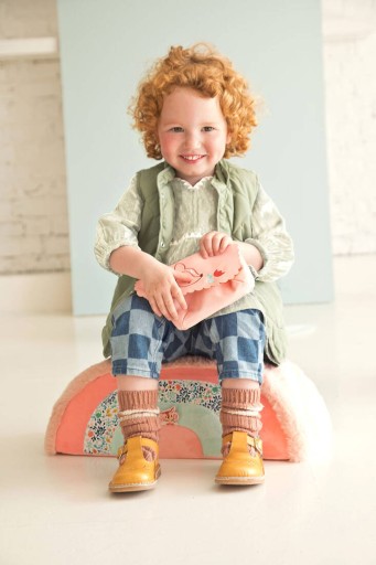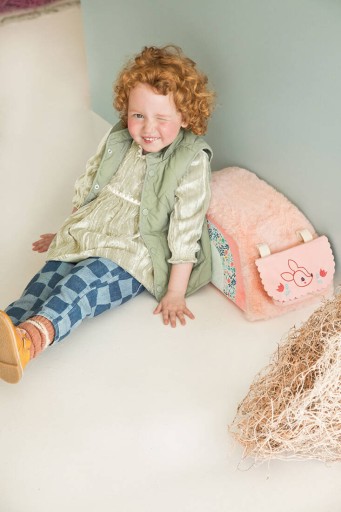 Dodatkowo, przy uchwycie kierownicy umieszczony jest dzwoneczek, a z tyłu znajduje się torba z ekoskóry na skarby malucha, zdobiona haftowaną buźką sarenki Stelli.