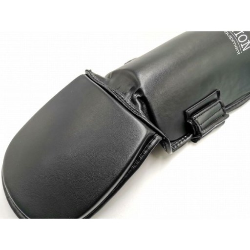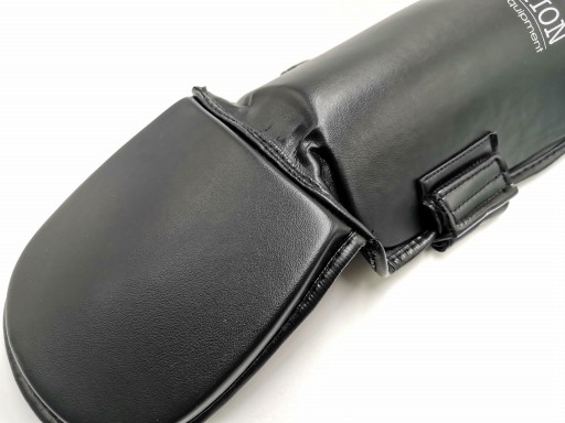 Profesjonalny twardy nagolennik, wykonany ze skóry syntetycznej PU, z grubą warstwą ochronną, wymodelowany, zapinany na rzepy i gumy, z osłoną podbicia stopy.