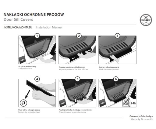 Nakładki na progi wykonane są z wysokiej jakości materiału, który jest barzdo trwały i odporny na zużycie. Montaż jest zupełnie prosty – wystarczy przykleić listwy do progów za pomocą dwustronnej taśmy klejącej 3M.