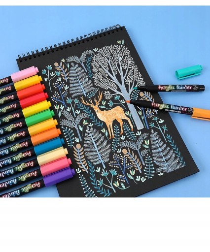 Miękka włókna końcówki markera pozwala na tworzenie pociągnięć markerem od grubości 1 - 3mm. Marker jest idealny do malowania, rysowania, kaligrafii, napisów, szkicowania, pisania, kolorowania i scrapbookingu dla dzieci oraz dorosłych. Najpopularniejsze kolory w jednym zestawie, doskonałe do wykonania rzemiosła dla dorosłych, żywe metaliczne kolory: złoto, srebro, brąz, czerwony, niebieski , zielony, fioletowy, czarny niektóre żywe kolory podstawowe-pomarańczowy, żółty, zielony, brązowy, czarny, czerwony, niebieski, biały (białe zastosowanie się przezroczyste, ale po wyschnięciu staje się nieprzezroczyste). Odpowiednie malowanie kamieni, ceramiki, szkła, drewna, płótno, czarny papier, karton, ceramika, plastik, tkanina, metal i wiele innych.Ilość: 24 kolory.