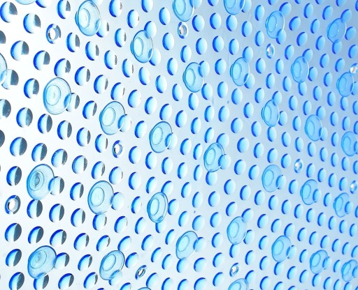 Mata prysznicowa w jasno niebiesko-transparentnym kolorze.