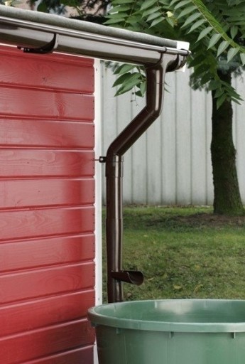 Zbieracz klapowy do rury 75 mm w kolorze szarym - pomaga odprowadzić wodę poza system rynnowy do umieszczonego pod nią pojemnika na deszczówkę - beczki, zbiornika itp.