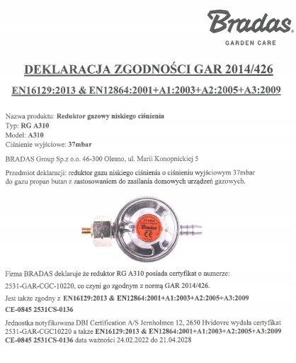 ✔️Reduktor gazowy jest zgodny z normą EN16129.