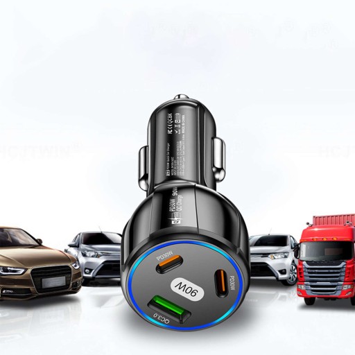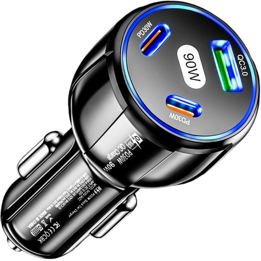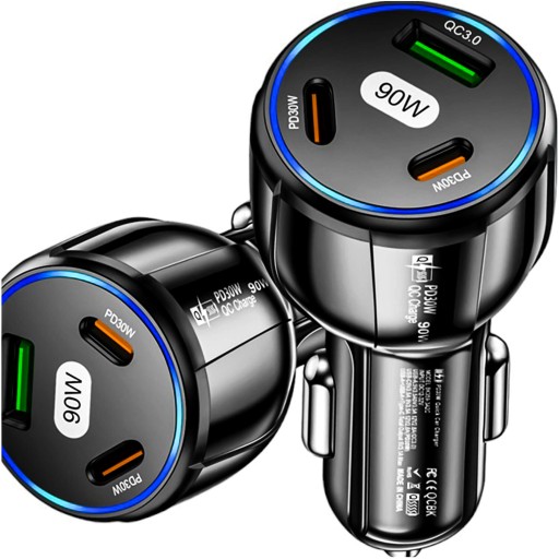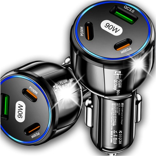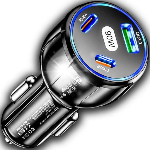 АВТОМОБИЛЬНОЕ ЗАРЯДНОЕ УСТРОЙСТВО 2x USB C PD 30 Вт USB QC 3.0 LED FAST ДЛЯ ТЕЛЕФОНА 90 Вт