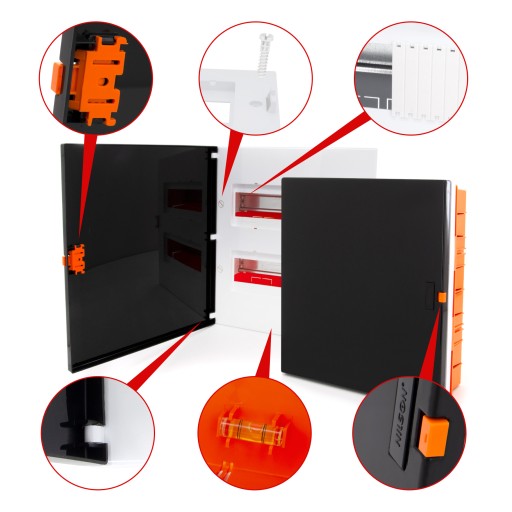 Umieszczenie wewnątrz każdej rozdzielnicy mini poziomnicy pozwoli na szybszy i bardziej dokładny montaż, a zaoszczędzony czas można przeznaczyć na inne prace.