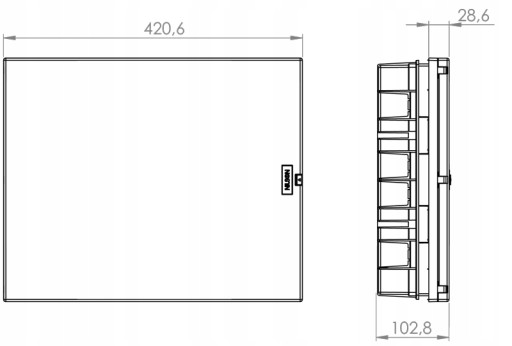 - wymiary rozdzielni: 420,6x343,6x102 mm,