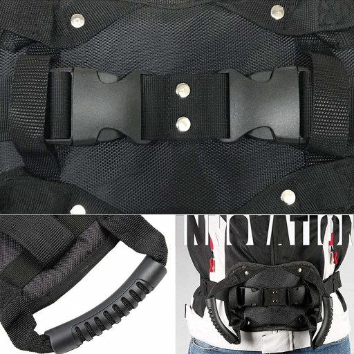 - Pas jest przeznaczony do noszenia po obu stronach. Z uchwytami z przodu kierowcy lub z uchwytami z tyłu kierowcy, podczas jazdy z większą prędkością ludzie chwytają za przednie uchwyty, aby poprawić wydajność aerodynamiczną, a podczas jazdy z mniejszą prędkością ludzie chwytają za tylne uchwyty, aby zapewnić sobie większy komfort, siedząc naturalnie w pozycji wyprostowanej.