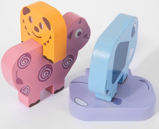 - 10 zróżnicowanych klocków w kształcie zwierząt (łatwiejsze do rozróżnienia dla maluchów)