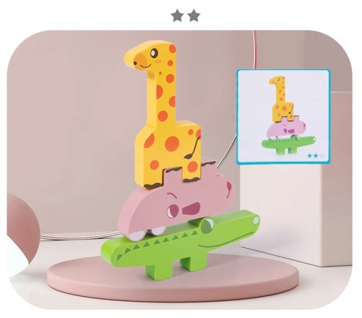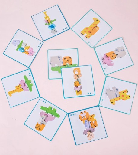 Oferujemy Państwu wyjątkową układankę dla dzieci, składającą się z kolorowych, drewnianych klocków w kształcie zwierząt. Nasz produkt został zaprojektowany zgodnie z zasadami Montessori, skupiającymi się na rozwijaniu umiejętności poznawczych i manualnych dziecka.