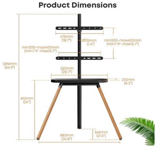 - Drewniana półka i ukryte prowadzenie kabli: Ten statyw pod telewizor wyposażony jest w drewnianą półkę (maksymalne obciążenie 22 funty) jako rozwiązanie zapewniające więcej miejsca do przechowywania akcesoriów. Ukryte prowadzenie kabli pozwala pożegnać się z czarnym przewodem telewizyjnym, który można schować w tylnej nodze.