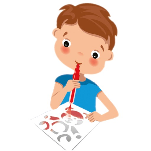 – Umieść flamaster w specjalnej plastikowej nasadce, tak by końcówka z farbą znajdowała się przy dolnym otworze nasadki. Na górze nasadki nałóż ustnik. – Dmuchaj w ustnik. – Obserwuj jak kolorowa mgiełka osiada na kartce dając świetny efekt.– Po zakończeniu pracy zostaw markera w pozycji wyjściowej.