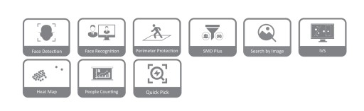 - Wbudowane funkcje AI: ochrona perymetryczna (2 kanały) lub wykrywanie twarzy / rozpoznawanie twarzy (1 kanał), klasyfikacja obiektu - człowiek/pojazd (4 kanały)